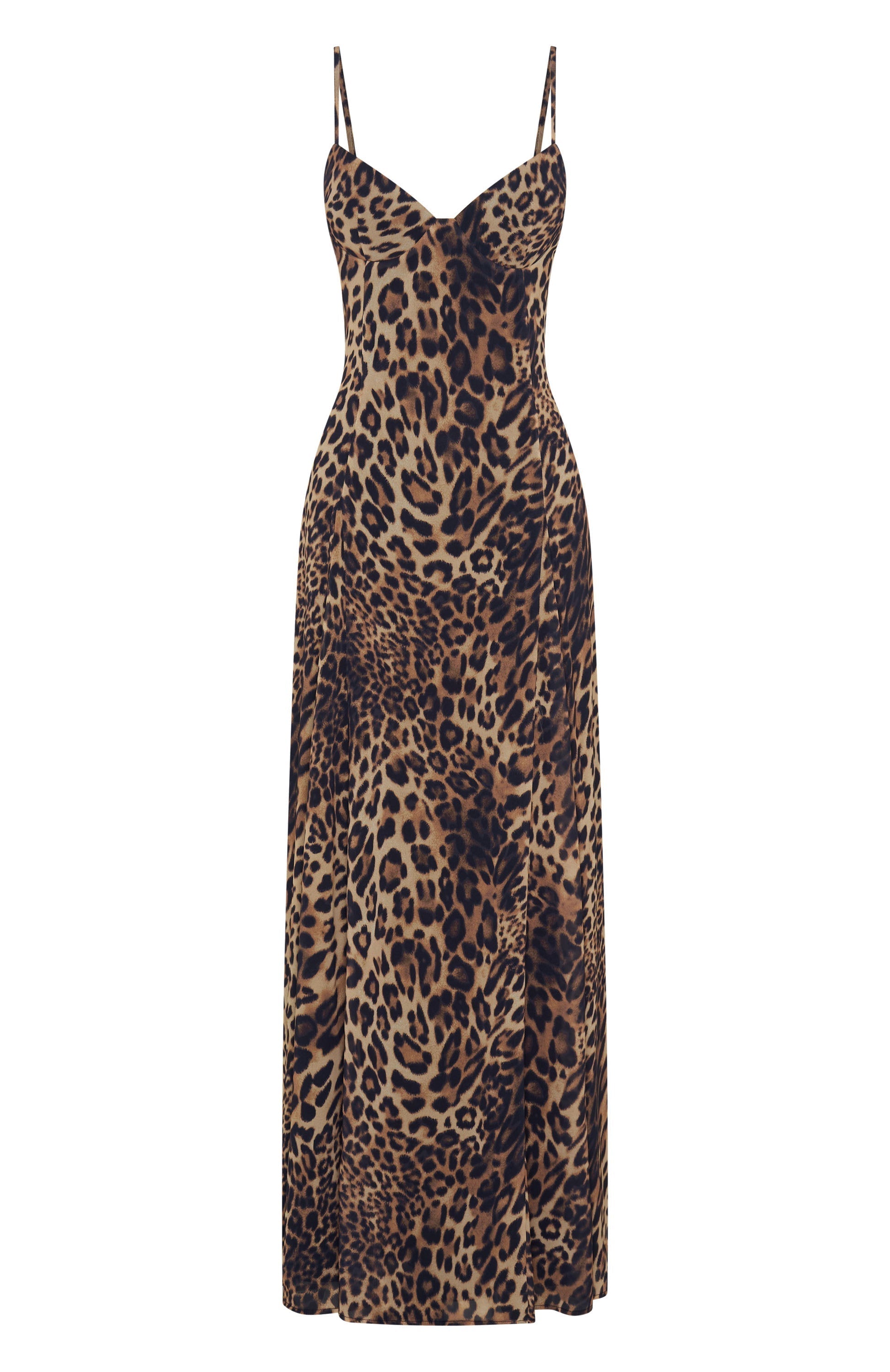 Make a lasting impression in the A Day In Nice Maxi Dress in Leopard! Features thin adjustable straps, bust cups, fitted waist and full length skirt. Complete the look with kitten heels, shoulder bag and gold jewellery for an elegant fit!