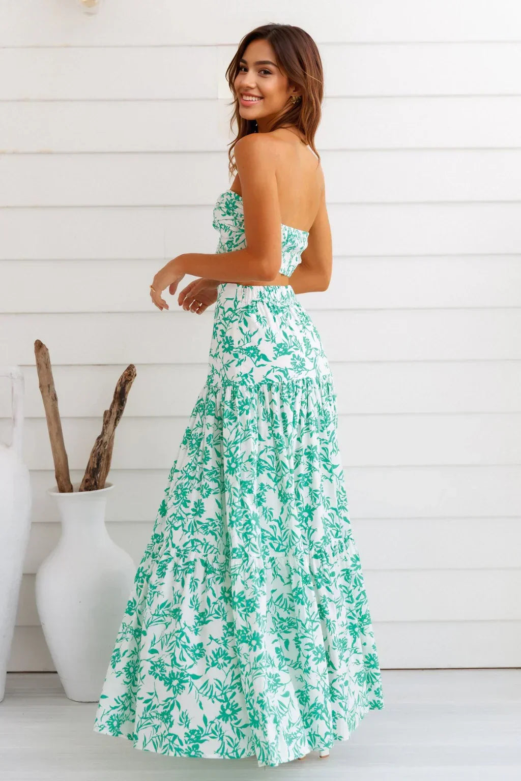 Flaunt yourself at all your next event with this stunning strapless crop top. Featuring a twist in the bust, this is a major must-have. Pair this with the matching skirt and white dainty heels.
