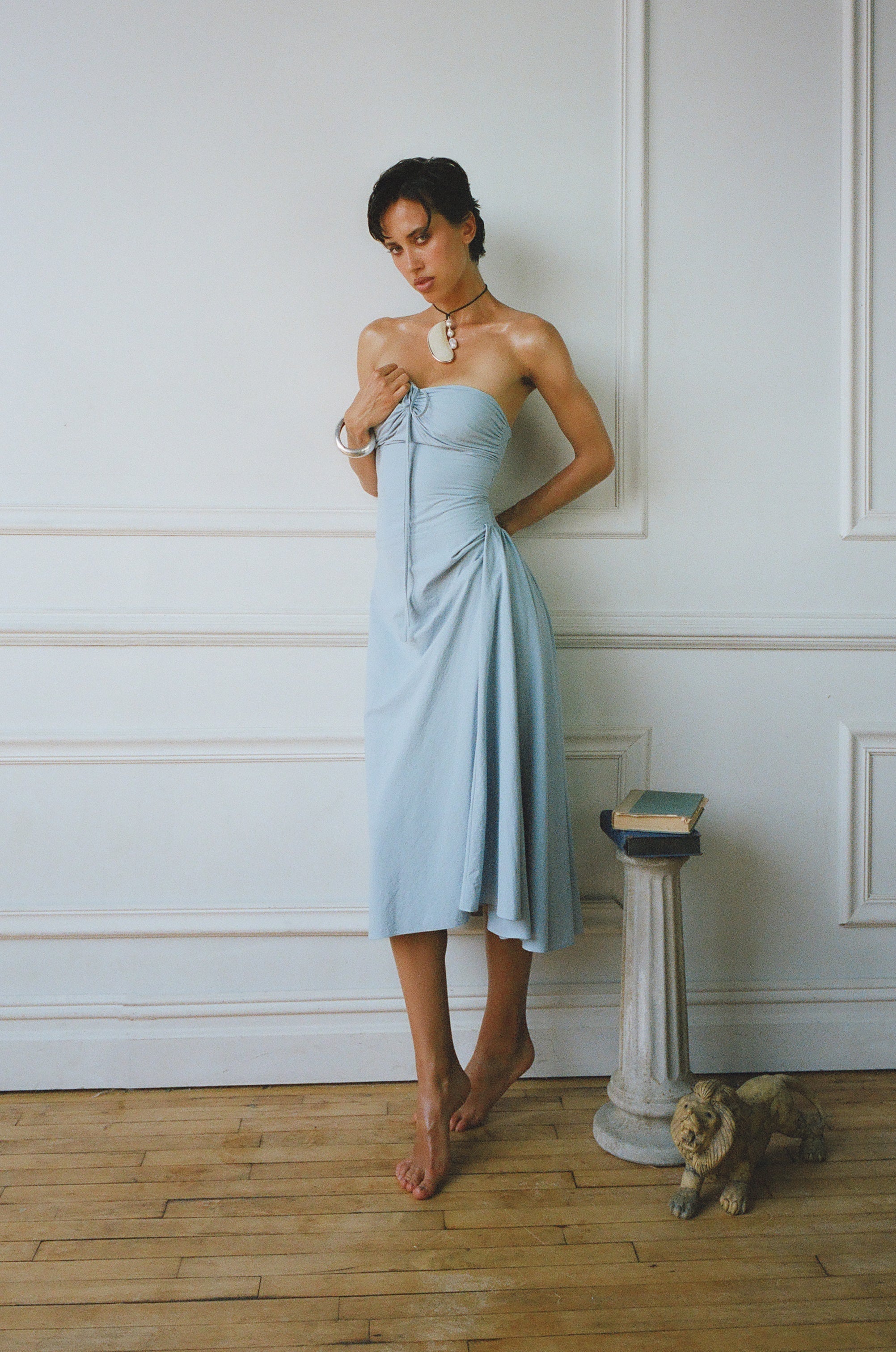 Crafted from a vintage-inspired crepey fabric and stone-washed for exceptional softness, this midi dress offers effortless elegance for any occasion. Adjustable straps and subtle back shirring create a flattering, fluid silhouette that falls just above the shins. Zipper-free and airy. Pair with sandals or sophisticated pumps from day to night. Dry clean or hand wash only.