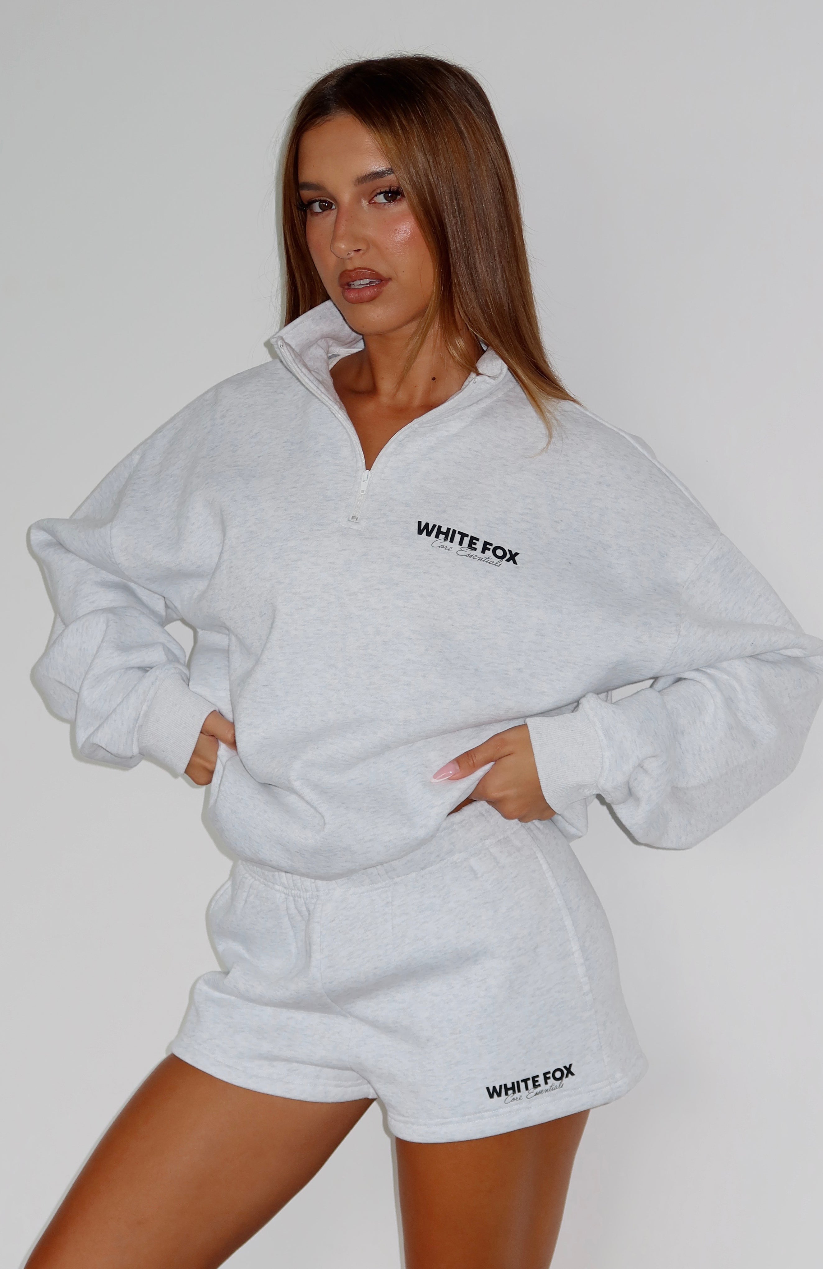 Create the cutest matching moment with the Core Essentials Lounge Shorts Grey Marle. Featuring an elasticated waistband with inner drawstring, side pocket detailing and soft, fleece fabric for extra comfort. Style with the Core Essentials Zip Sweater Grey Marle and your favourite sneakers!