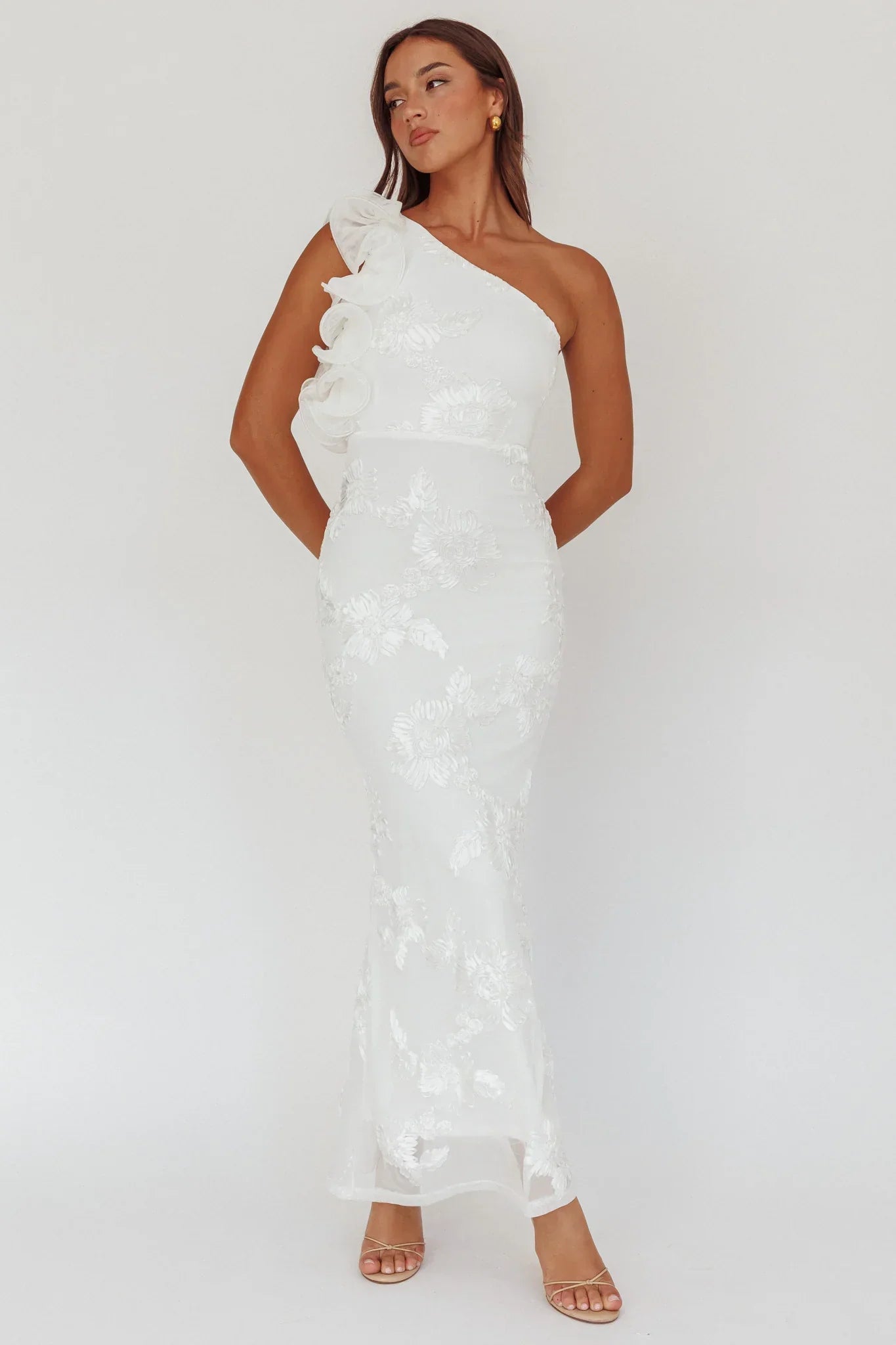 Make heads turn in our gorgeous Deanna maxi dress. It features a one-shoulder style with pretty ruffle detail. Wear it to your bridal shower or special birthday dinner teamed with strappy, nude heels and a clutch for an unforgettable look.