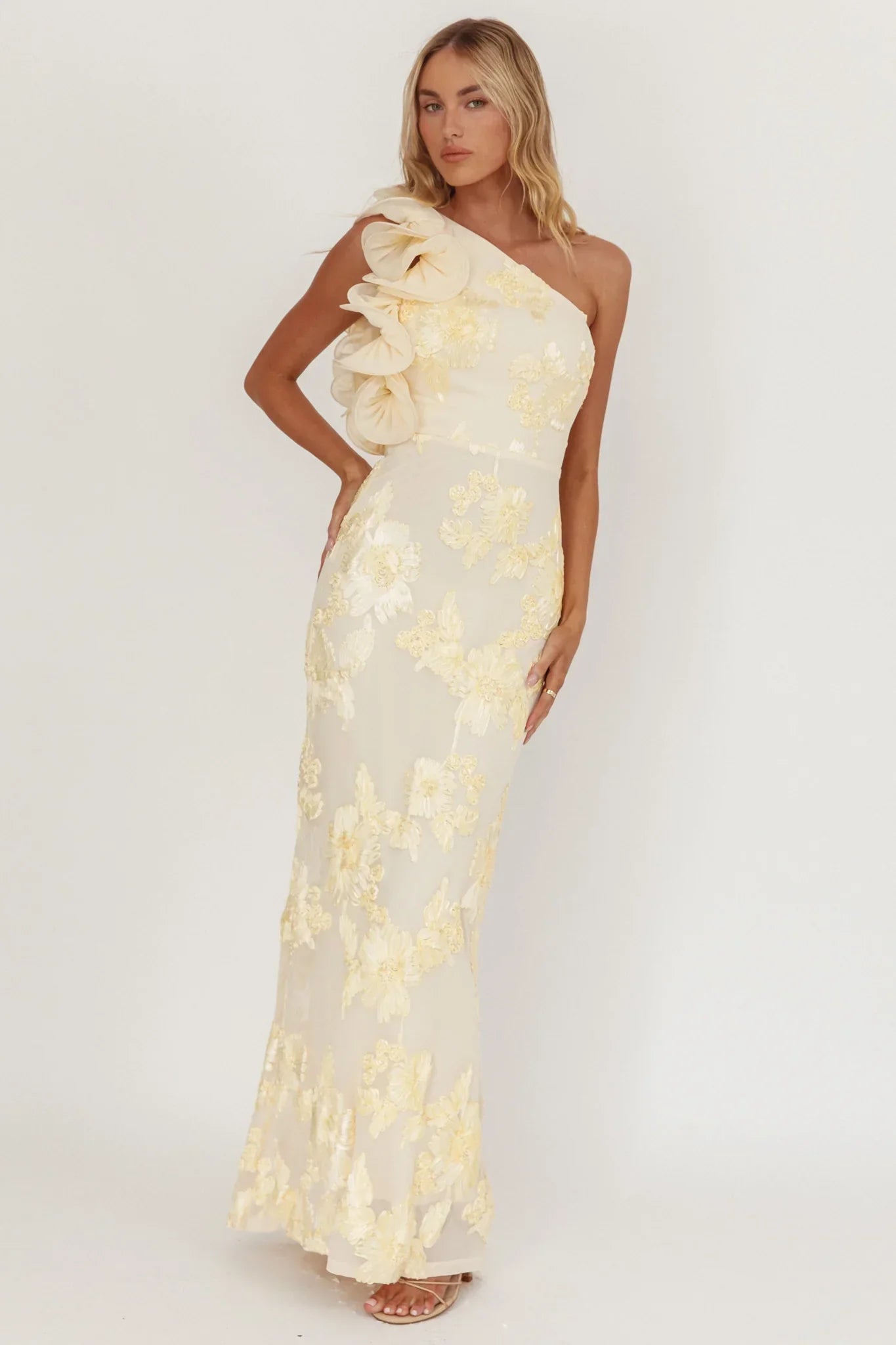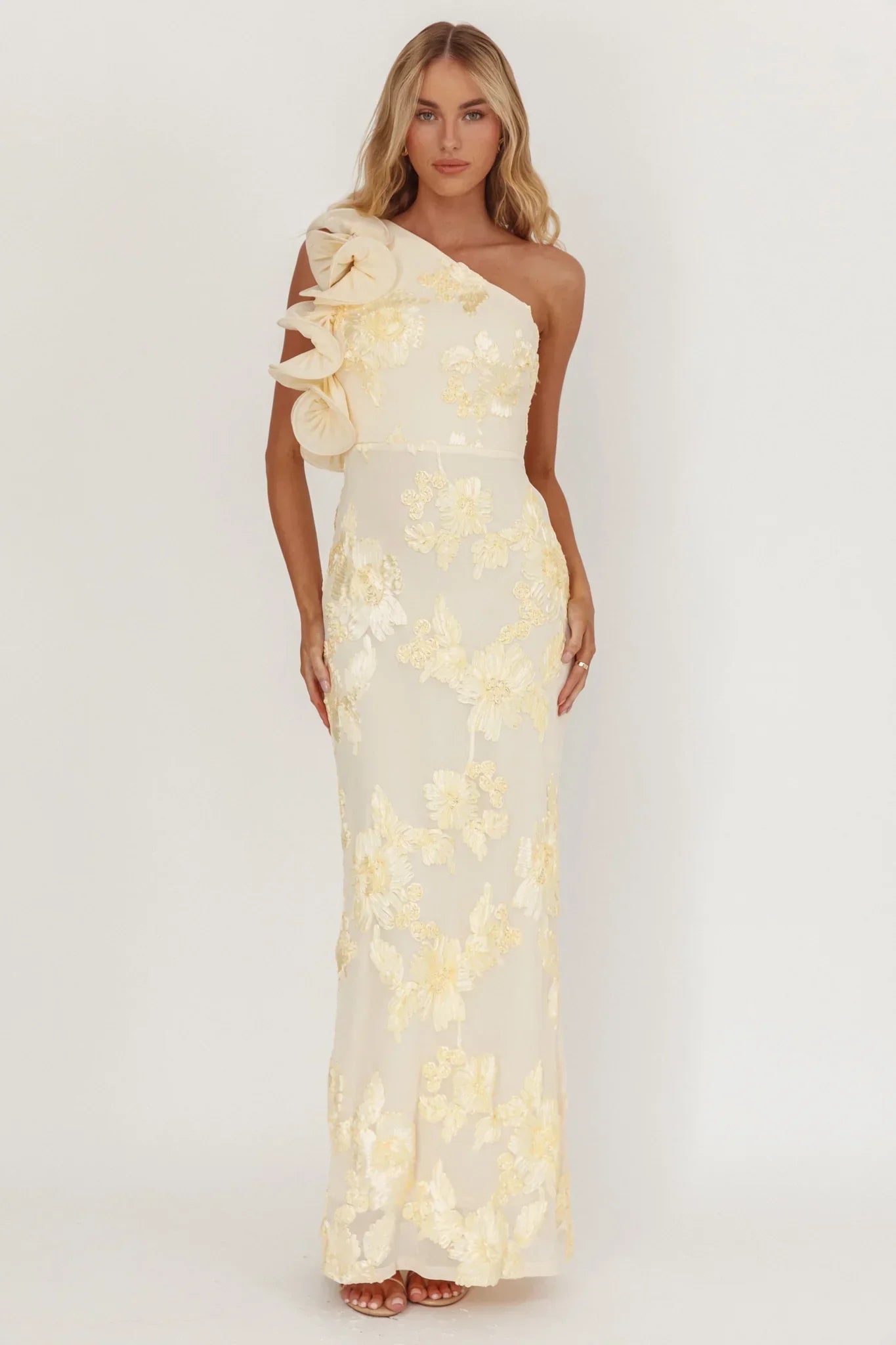 Make heads turn in our gorgeous Deanna maxi dress. It features a one-shoulder style with pretty ruffle detail. Wear it to a red carpet event or special birthday soiree teamed with strappy, nude heels and a clutch for an unforgettable look.