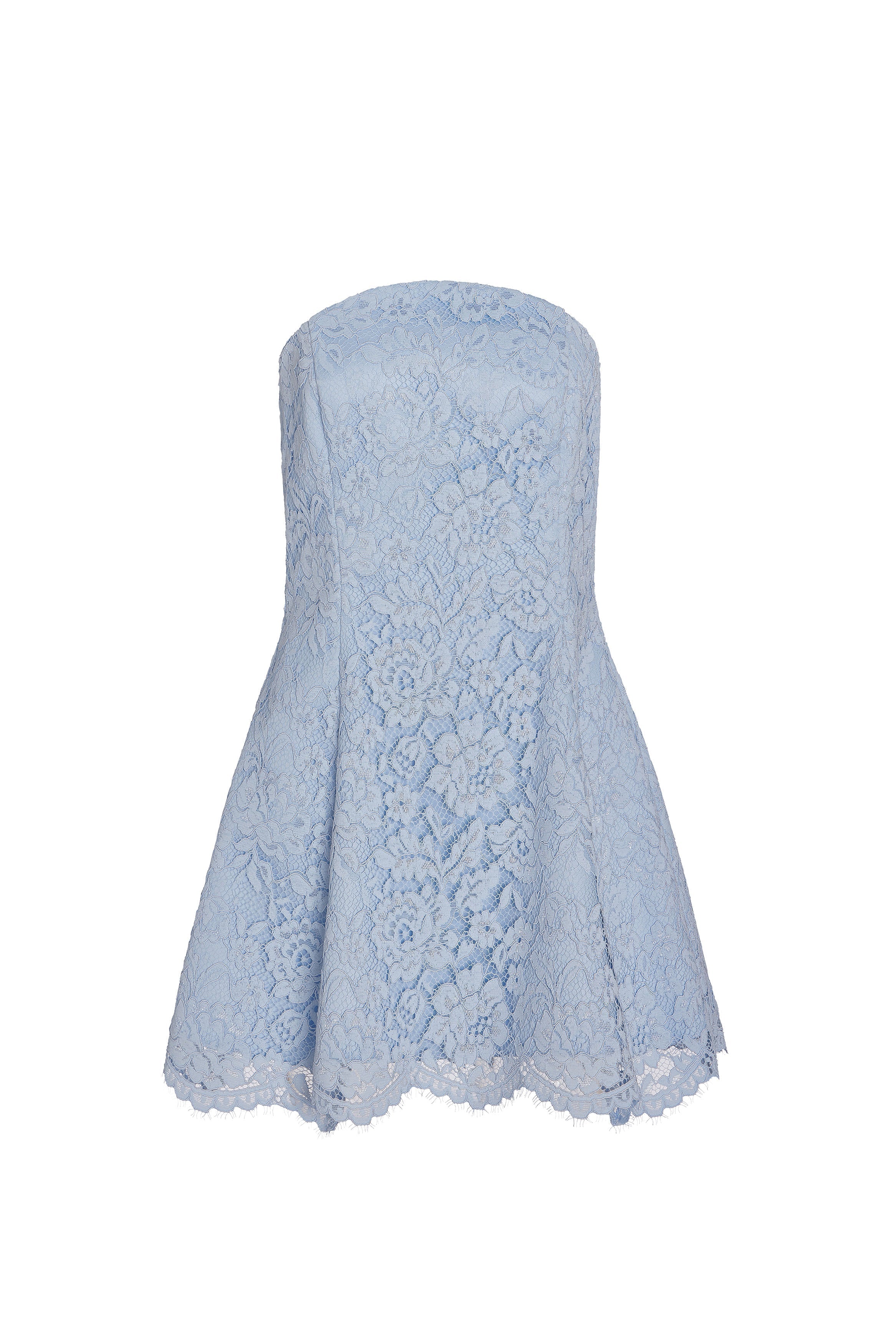 Choose romance in the Romilly Dress. This lace mini features a smooth strapless neckline and a fitted bodice for a look that’s both flirty and feminine. Style yours with strappy heels and a white headband for a dreamy bridal look.