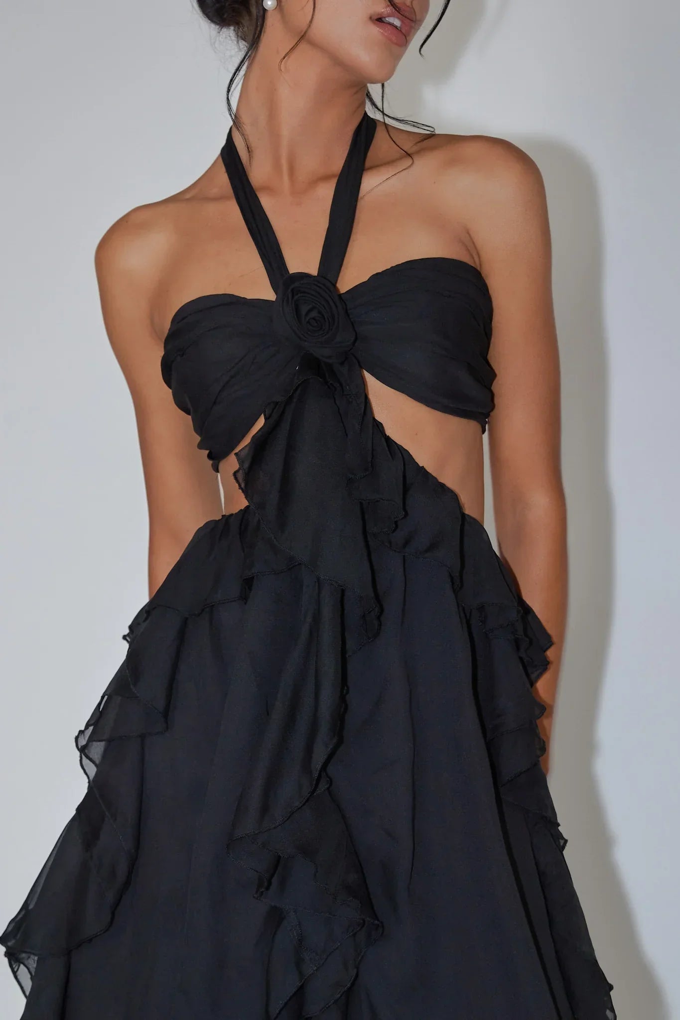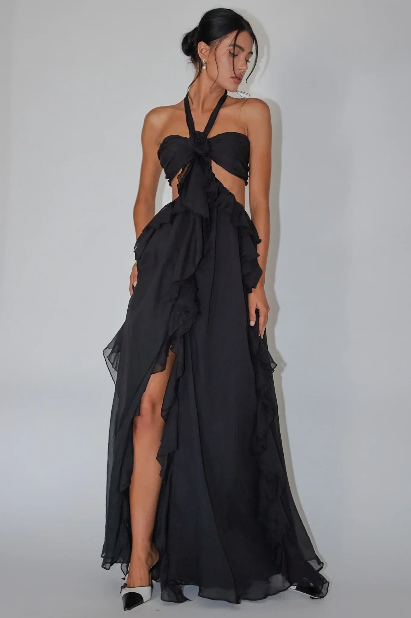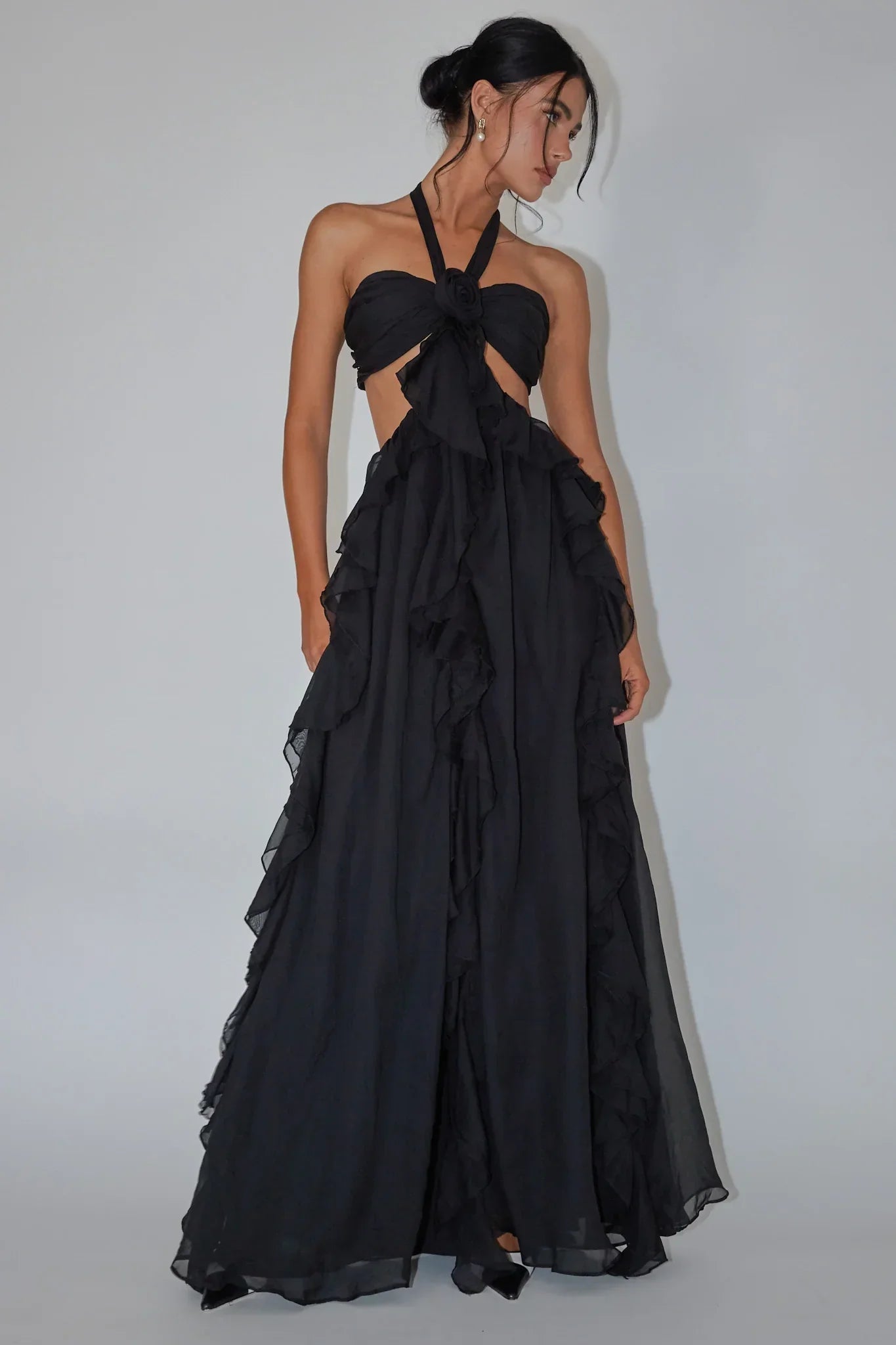 You're a real showstopper in our gorgeous Santiago maxi dress. Featuring a halter neckline and dramatic ruffle detail throughout, this one is sure to send you straight to the best-dressed list! It's perfect for a special birthday celebration or gala event. Team it with strappy, black heels and a purse for an ultra glam look.